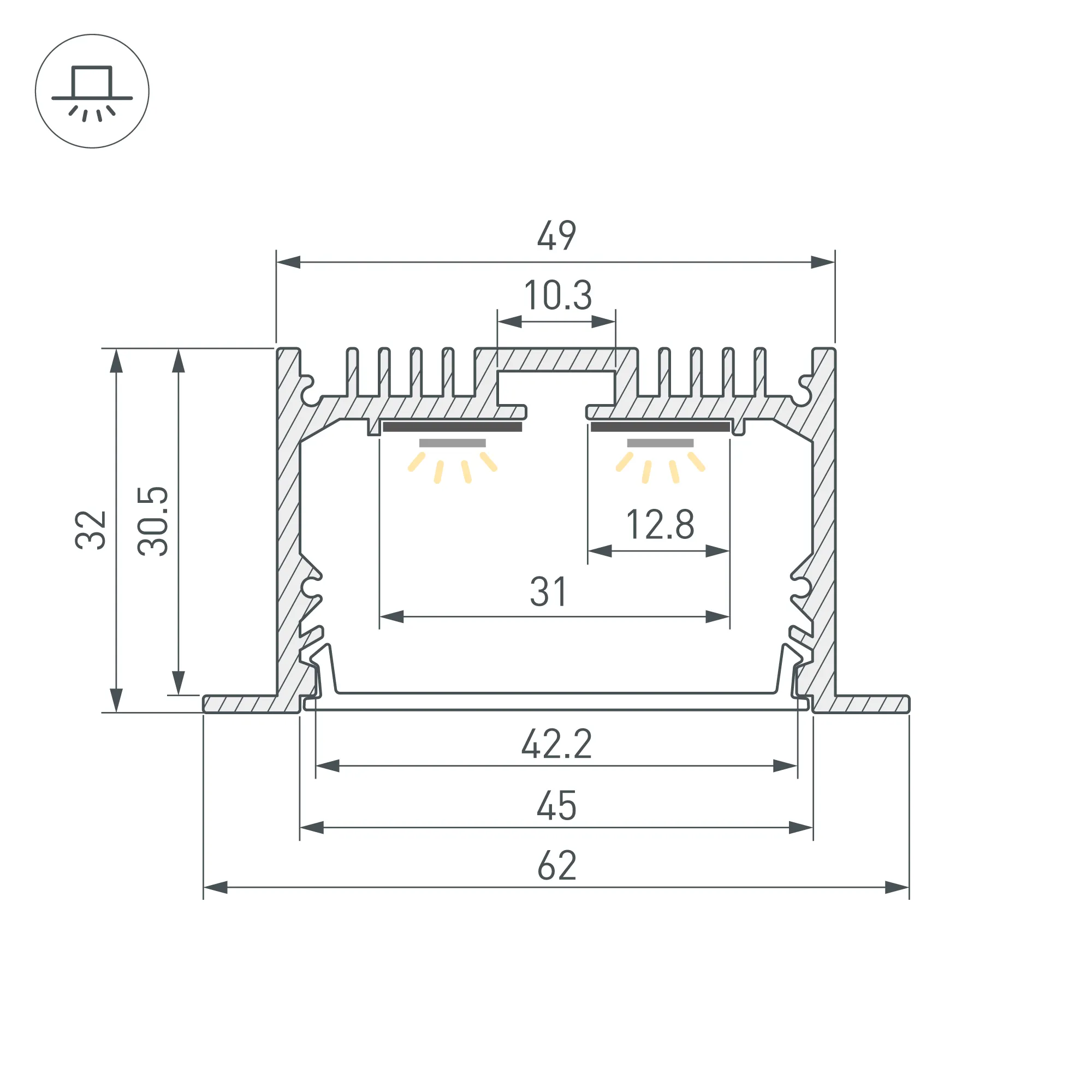 Алюминиевый профиль черного цвета для светодиодных лент и линеек. Цвет - черный RAL9005 (порошковая окраска). Габаритные размеры (L×W×H): 2000x62x32 мм, паз для установки 49 мм. Ширина площадки для ленты 31 мм. Экраны, заглушки и другие аксессуары приобретаются отдельно. Цена за 1 метр.